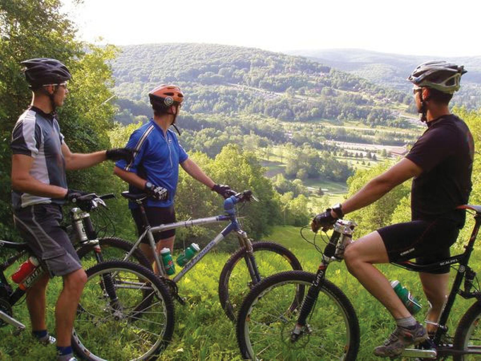 Riders overlooking Holiday Valley from the mountain bike trails