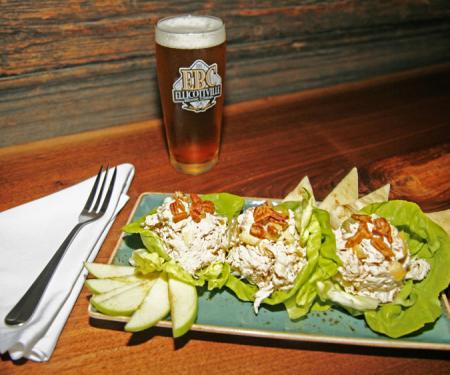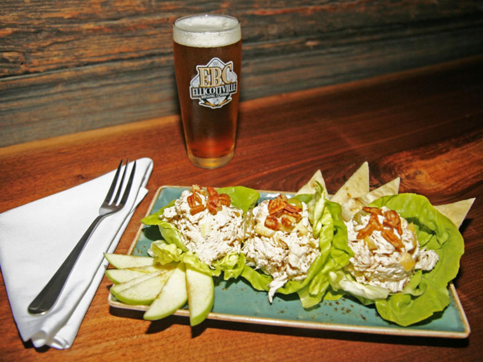 Appreciating a fine, warm, sunny summer day in Ellicottville with the EBC Mango Chicken Salad is only half the pleasure. With fork in one hand, it only makes sense to fill your other hand with a tasty brew. My suggestions for this dish would be 1) our Blueberry Wheat, which happens to be our #1 seller thanks to its light golden wheat flavor and subtle blueberry aroma. Or 2) opt for my absolute favorite choice to accompany this salad: our Summer Hefewiezen, which utilizes ancient brewing techniques that beer makers have perfected over thousands of years. The “Hefe” is yellow in color with hints of banana and clove, using only German noble hops, wheat, barley, yeast, and water.