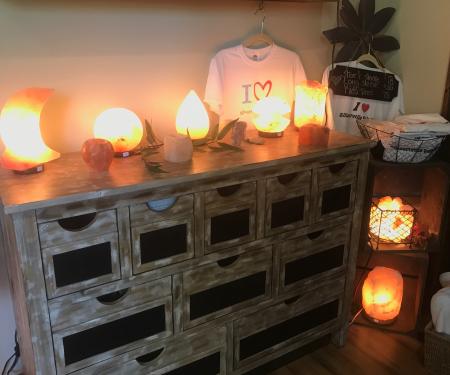 Draper recently started carrying grey and white lamps which are even more rare than the pink salt we have come to recognize as the classic Himalayan Salt. A grey lamp is darker, making it ideal for sleeping quarters, while the white is better for work spaces since it helps to enhance mental clarity with the brighter white glow.  Draper advises that some big box companies tend to put a laminate over their salt lamps which makes shipping and stocking easier but reduces their overall effectiveness.  She assures that the lamps at her salt cave are authentic, coming directly from overseas.