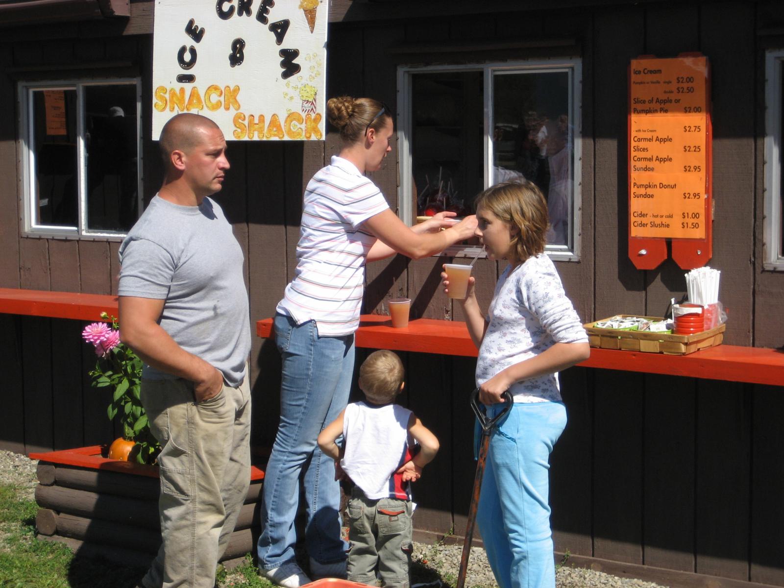 Family about to enjoy some apple cider at Pumpkinville. Pumpkinville opens for the season on Sept. 15. Photo courtesy Pumpkinville