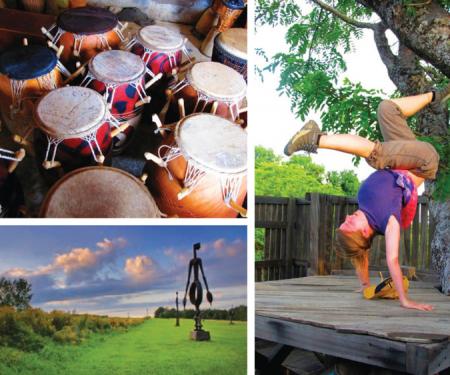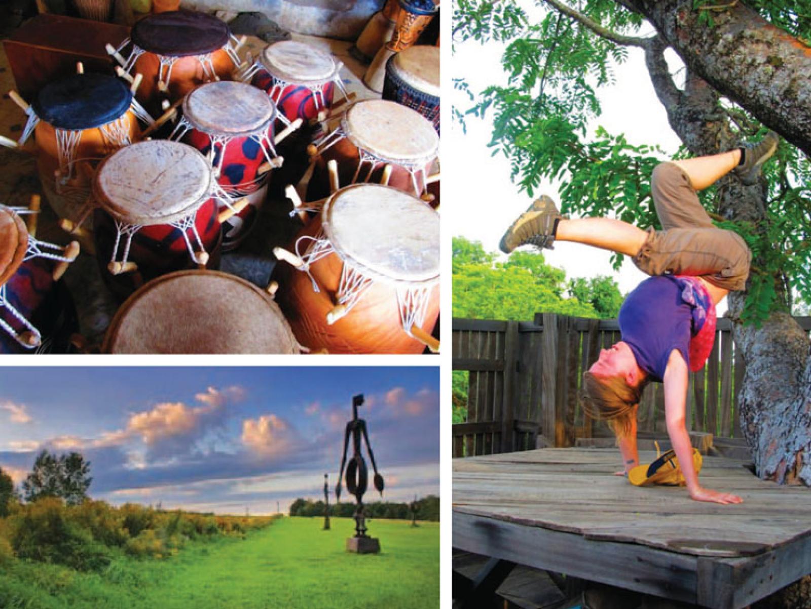 Beginning August 2, the best of both of these worlds collide, as Slyfest 9 kicks off with its opening ceremonies.  For just $150 (or $200 if you live in the city and would like transportation from the Slyboots Campus) students will open the door to nine days of art, music and dance camp at Griffis Sculpture Park.  World-class arts education will take place through interactive workshops, lectures, group activities and performers (to be announced soon!)  Everything under the sun will be covered at Slyfest, including Literacy (creative writing, performances), Music (percussion, folk music, improve), Dance & Movement (yoga, circus acts, cycling), Art (drawing, painting, digital media, photography), and Science & Math (structures, architecture and bicycle mechanics).  It’s important to note, all of these activities are all ages no matter what your interest level or background.  Camp begins each day at 10am and runs until 4:30pm daily.  Space is limited, so early registration is encouraged!