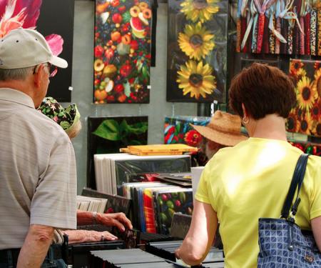 Artists often demonstrate their skills in their booths and welcome questions and comments from the public. On Sunday, there will be special demonstrations in the gazebo by Dan Hayward, a glass artist creating fused and stained glass, and Peggy Houser, a jeweler specializing in beading. Those will take place from 11am-noon.