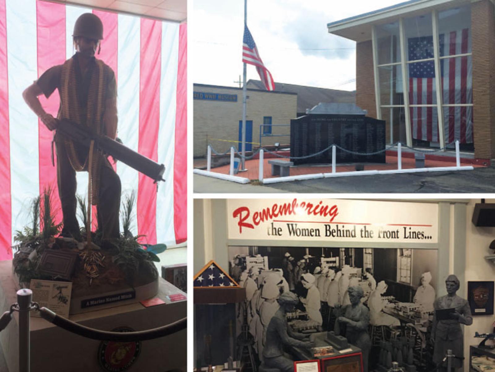 Upon pulling into the parking lot, I’m welcomed by a memorial engraved with names and a giant American flag. I walk through the entrance, and history comes to life. To the left, statues depicting women making munitions shed light on the museum’s genesis, while the walls show displays of Patton’s 3rd Army Advance and inspirational posters of the times.