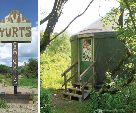 The cost to rent a yurt is $60/night; two tent sites are also available for $25/night. However, campers can rent the entire 13-acre property for $110/night, which includes the yurt, tent sites, an activity area, communal fire pit, and a nice, secluded area where the property “takes on a whole new feeling as it enters into the hardwood forest at the back of the property,” according to Dineen.