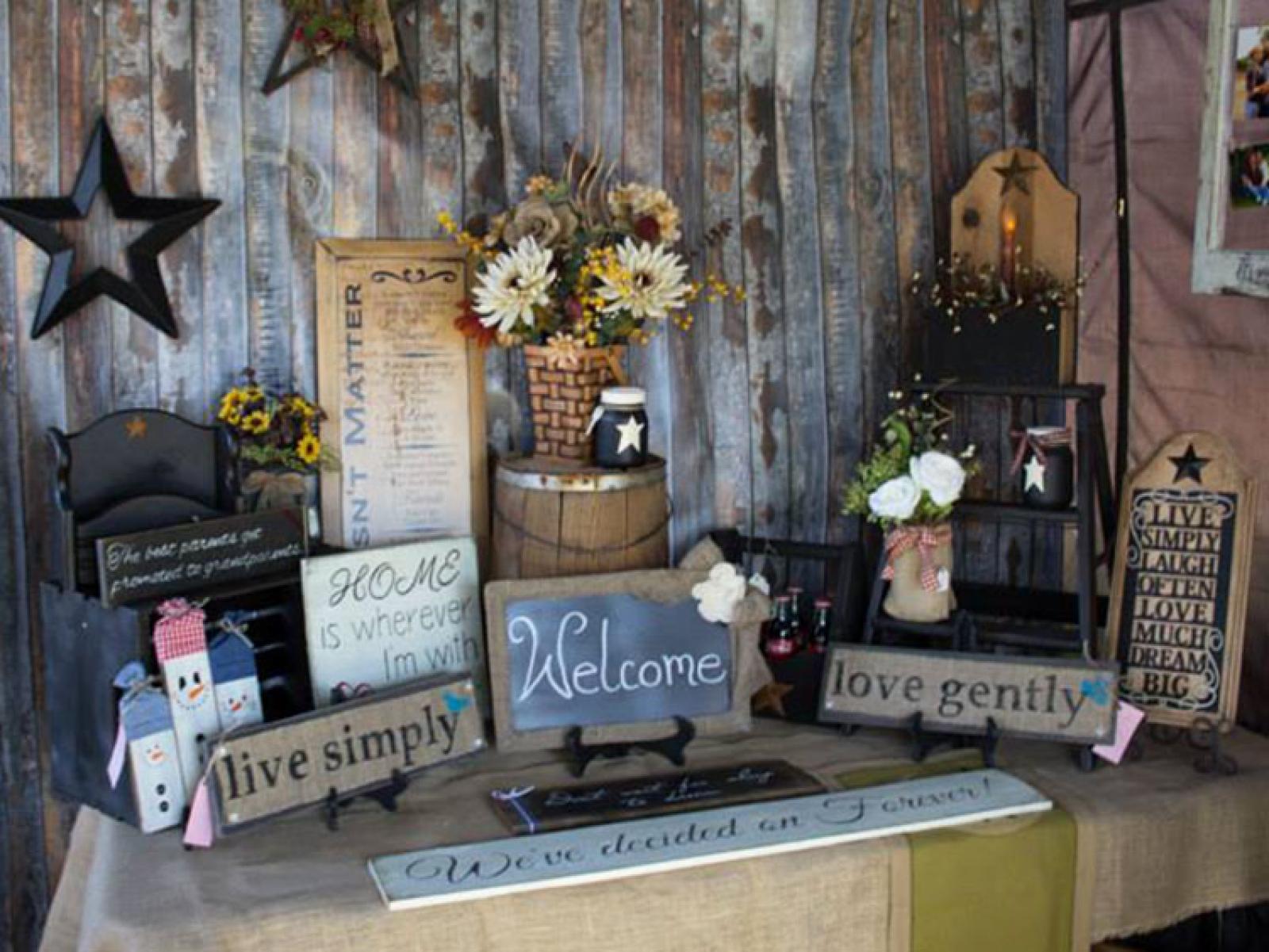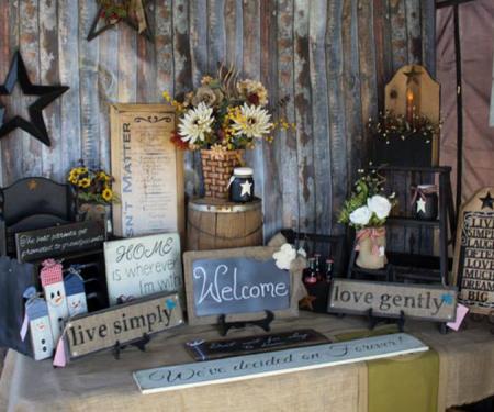 Scanlan makes country primitive signs, florals, and Christmas ornaments, and she also teams up with other artisans to offer more variety and have more helping hands. Other offerings include Lora Farnham’s homemade soaps, bath products and candles, and Nichole Pennell’s children’s dresses, onesies, and bibs. According to Scanlan, “The most popular items are the signs. People love to stop and read them, and I try to have one to fit most everyone!”